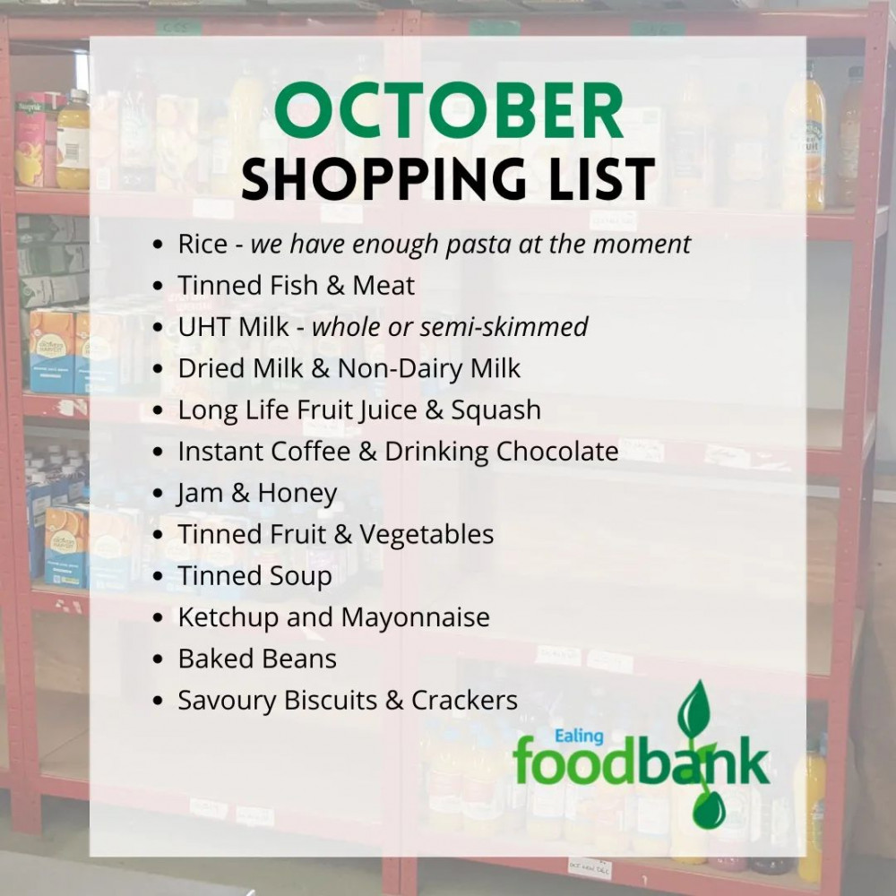 In a post on its social media page, Ealing Foodbank wrote: "Here is our list of most needed items this October. Thank you so much for your donations; every tin helps so much!